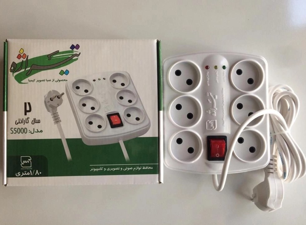 - محافظ کامپیوتر 5000 تیراژه دارای 6 خروجی پریز و جریان خروجی 10 آمپر است . حداکثر توان خروجی این محصول 2400 وات و مناسب لوازم صوتی و تصویری و الکترونیکی می باشد .